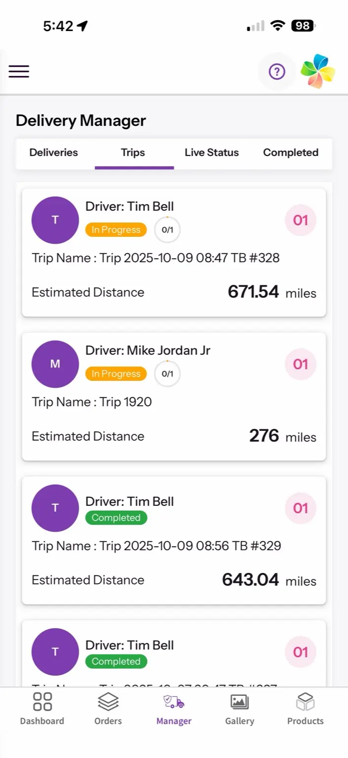 As soon as new orders come in, they’re automatically added to your driver’s delivery trip list — zero manual entry.