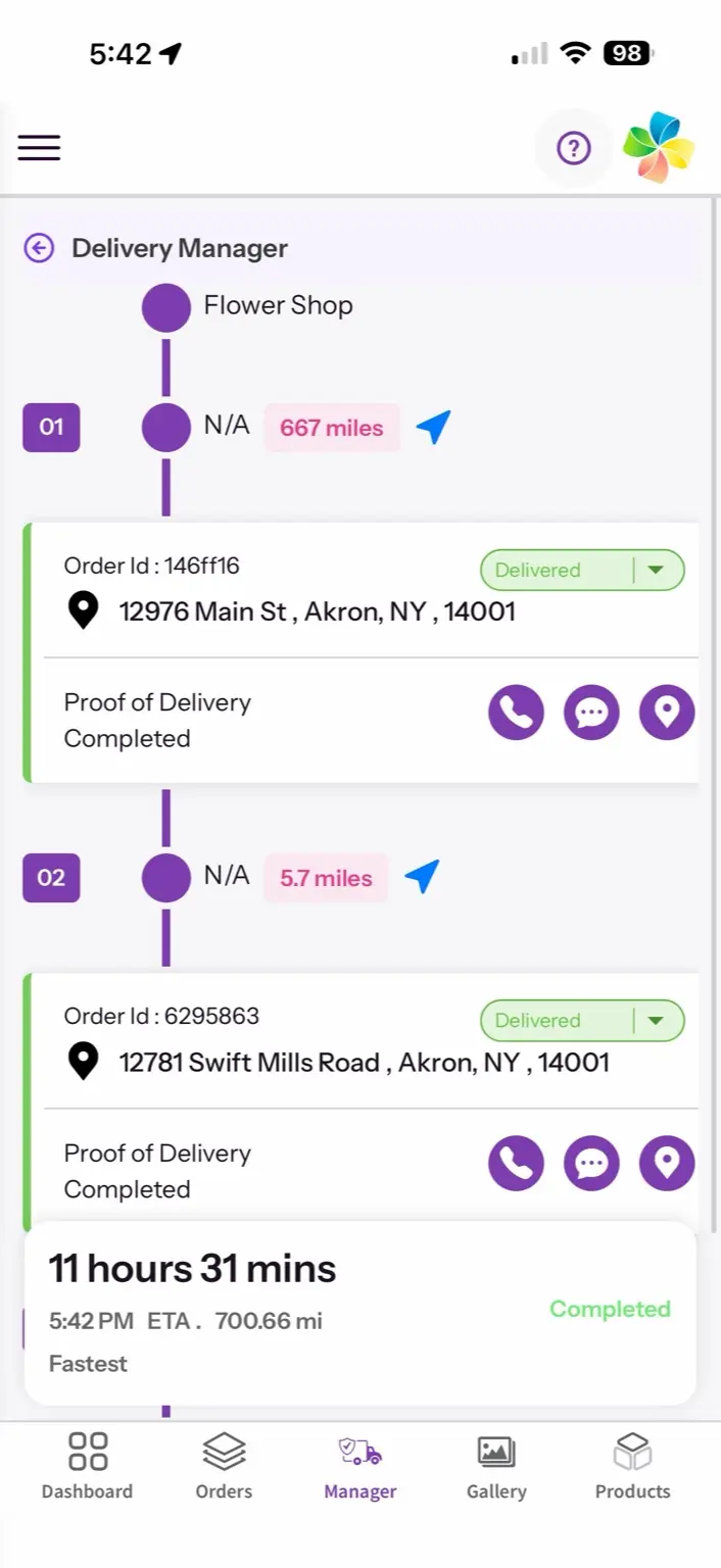 See exactly where your delivery drivers are, when they’re en route, and when they’ve completed a drop-off — no more guessing or calling to check in.